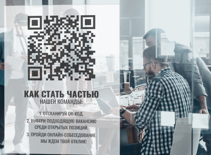 Распечатайте промо-материалы с QR-кодом. Вы можете редактировать подборку вакансий, не меняя QR-код.
